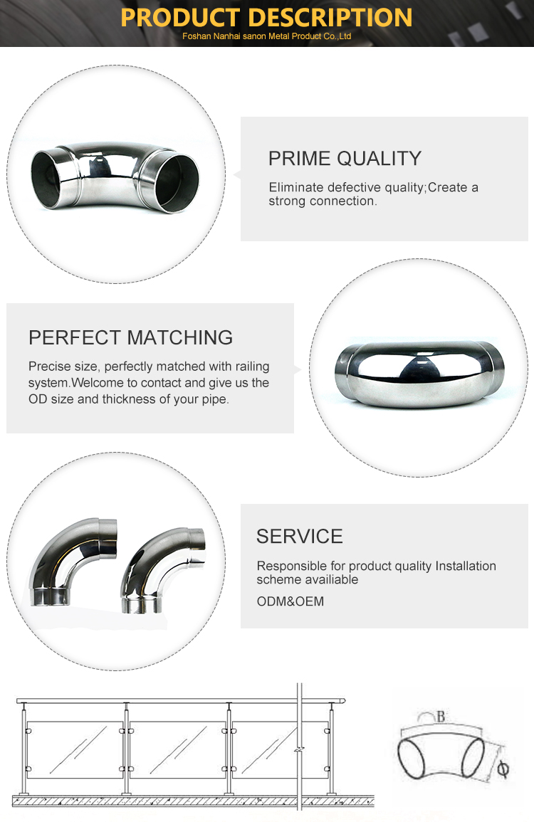 • 直銷不鏽鋼樓梯扶手管 不鏽鋼扶手彎頭 加厚 鏡麵拋光配件 90度彎拐可用