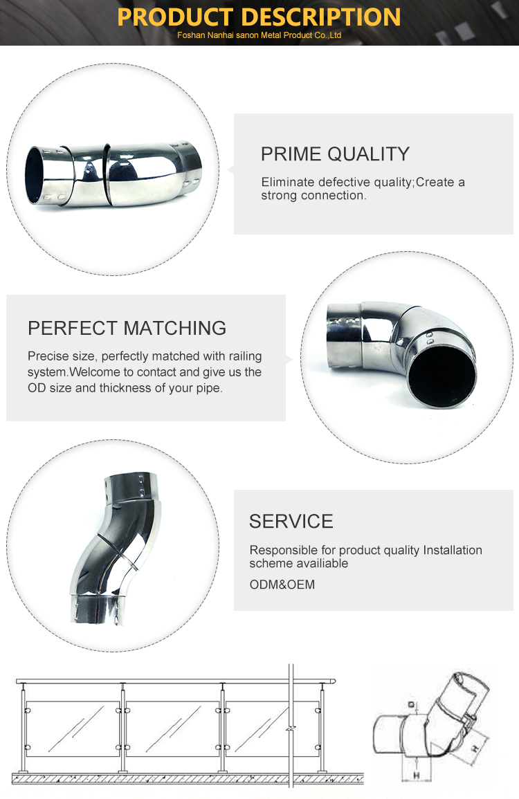 • 焊接度不鏽鋼樓梯扶手彎頭201 304