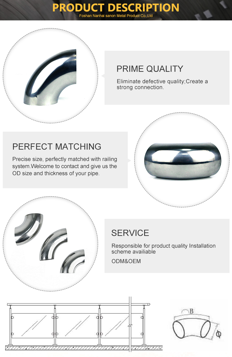 • 焊接度不鏽鋼樓梯扶手彎頭201 304