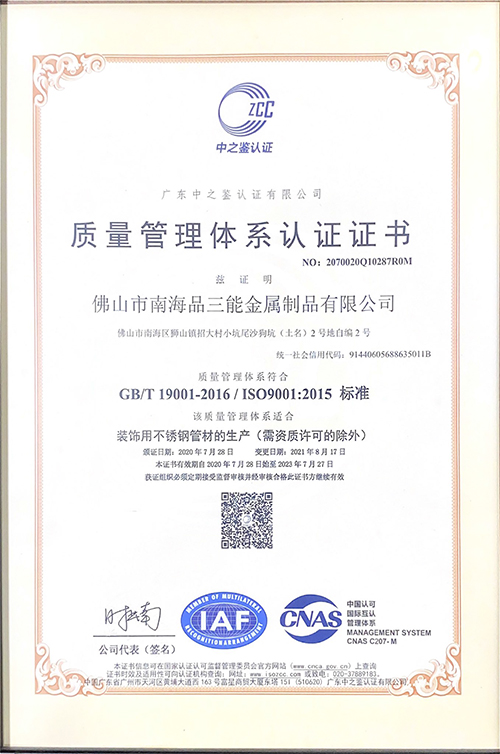 質量管理體係認證證書
