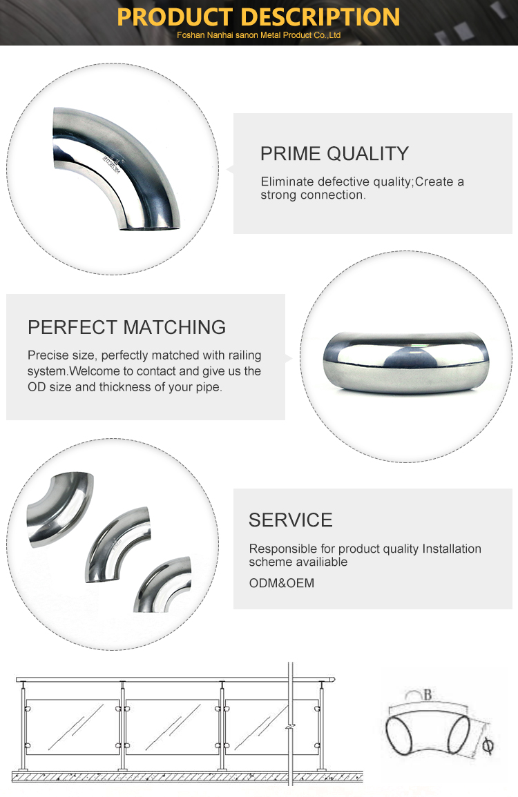 • 焊接度不鏽鋼樓梯扶手彎頭201 304