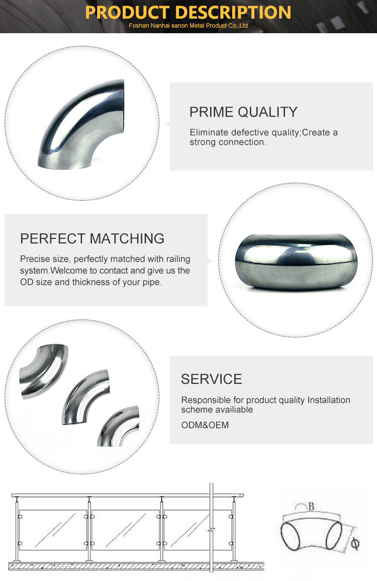 • 焊接度不鏽鋼樓梯扶手彎頭201 304